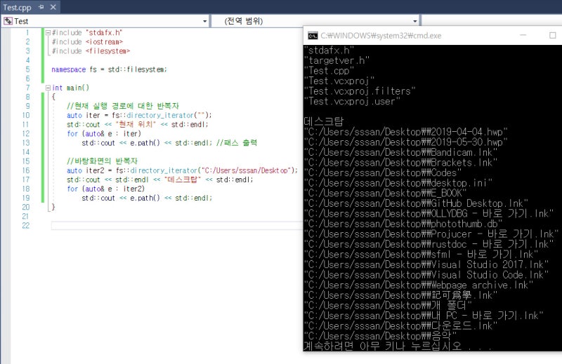 auto iter2 = fs::directory_iterator("C:/Users/sssan/Desktop");