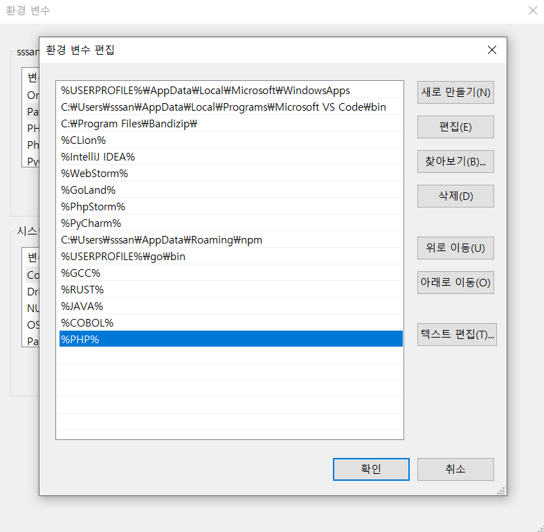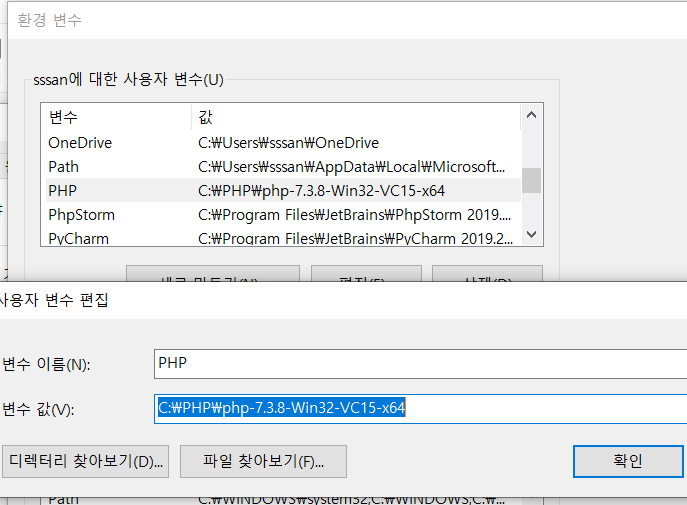 ๊ทธ๋ฆฌ๊ณ ์ธ๋ถ์์ ํธํ๊ฒ ์ฌ์ฉํ ์ ์๋๋ก, php.exe๊ฐ ์๋ ์์น๋ฅผ ํ๊ฒฝ๋ณ์์ ์ ์ฅํ๋ค.