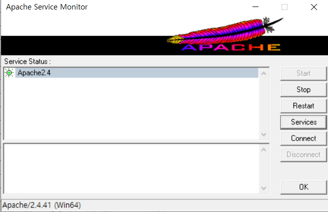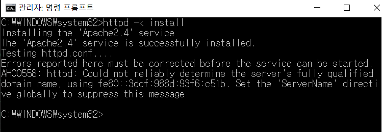 httpd -k install์ด๋ผ ์น๋ฉด ์๋ฒ๊ฐ ์ค์น๋๋ค.