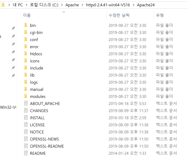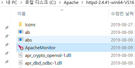 ๋ C:์ Apache ํด๋๋ฅผ ๋ง๋ค์ด๋๊ณ ๊ฑฐ๊ธฐ๋ค ์ง์ด๋ฃ์๋ค.