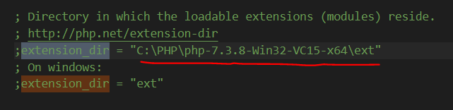 ๊ทธ๋ฌ๊ณ ๋๋ฉด ํ์ผ์ ์ด์ด์ extension_dir์ด๋ผ๋ ๋ณ์์ php ํด๋์ ext ํด๋ ๊ฒฝ๋ก๋ฅผ ์ ์ฅํ๋ค.