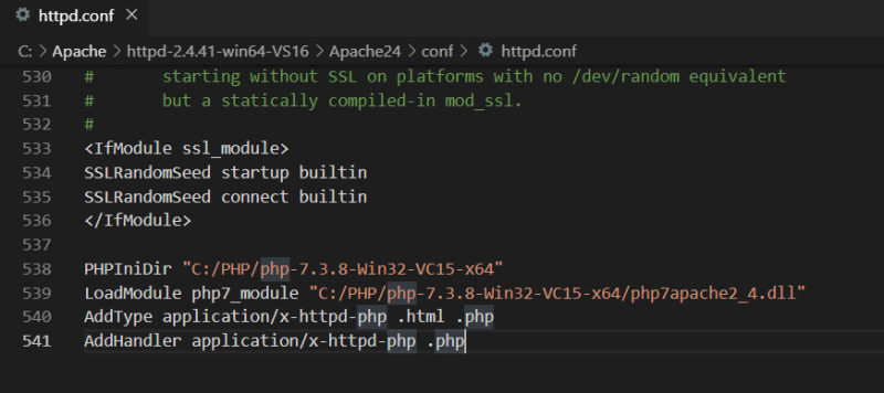 LoadModule php7_module "๊ทธ ๊ฒฝ๋ก/php7apache2_4.dll"