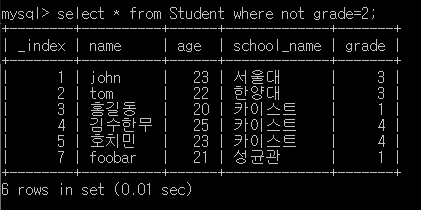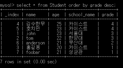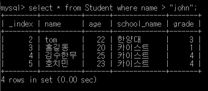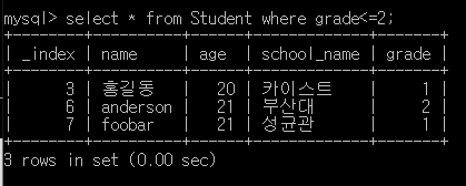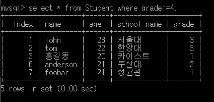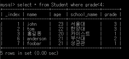 ์๋ ์ฟผ๋ฆฌ๋ grade๊ฐ 4๋ณด๋ค ์์๊ฒ๋ง ์ถ๋ ฅํ๋ค.