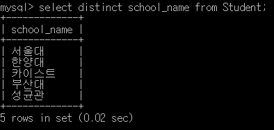 select ๋ค์ distinct๋ฅผ ๋ถ์ฌ์ฃผ๋ฉด ์ค๋ณต๊ฐ์ ์ง์ด ์ํ๋ก ์ถ๋ ฅํด์ค๋ค.