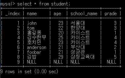 ์ด๋ธ์ ๊ฐ๋ณธํค์ธ _index๋ฅผ ๋นผ๋ฉด ์ ๋ถ NULL์ด YES๋ก ๋์ด์๋ค.