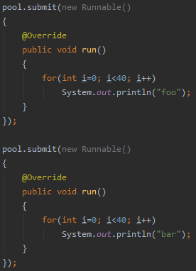 μλ μ½λλ Runnable κ°μ²΄λ₯Ό 2κ° κ΅¬νν΄μ λ λ¦°λ€.