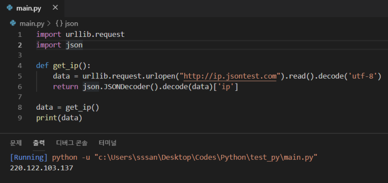 data = urllib.request.urlopen("http://ip.jsontest.com").read().decode('utf-8')