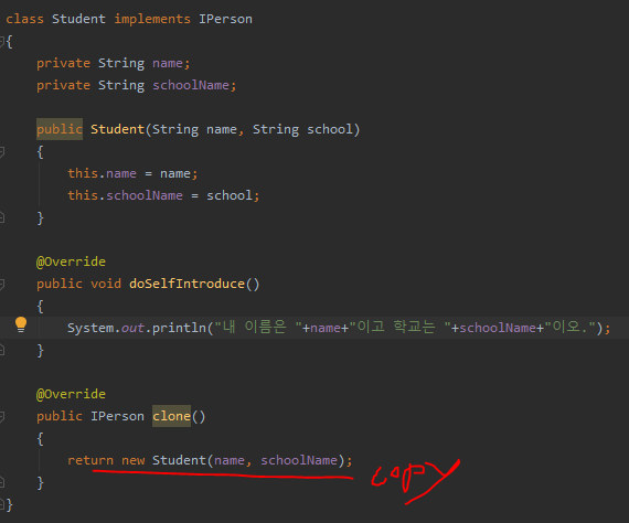 doSelfIntroduce는 clone만 덜렁 있으면 심심해서 구현해봤다.