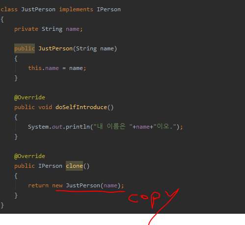 그러면 실제 객체의 종류나, 해당 객체의 상태를 알 필요없이 잘 만들어졌고, 잘 조작된 객체의 복사본을 잘 갖다쓸수 있다.