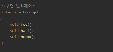 여기서는 FooImpl이라는 인터페이스를 두고 실제 구현 객체를 저장하도록 했다.