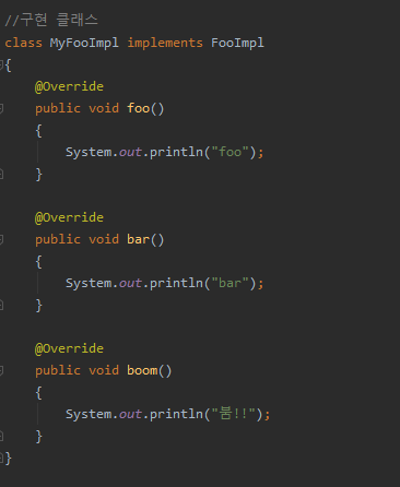그리고 구현 클래스는 뭐... 상속받고 오버라이딩을 하려거든 하면 된다.