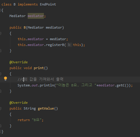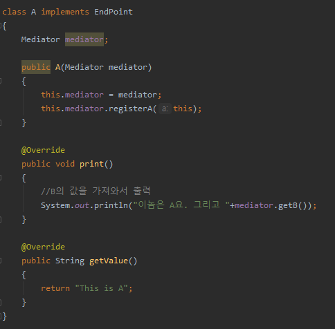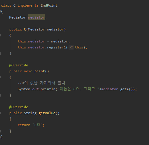그리고 다른 녀석의 값을 요청하는 작업은 전부 미디에이터를 통해 수행한다.