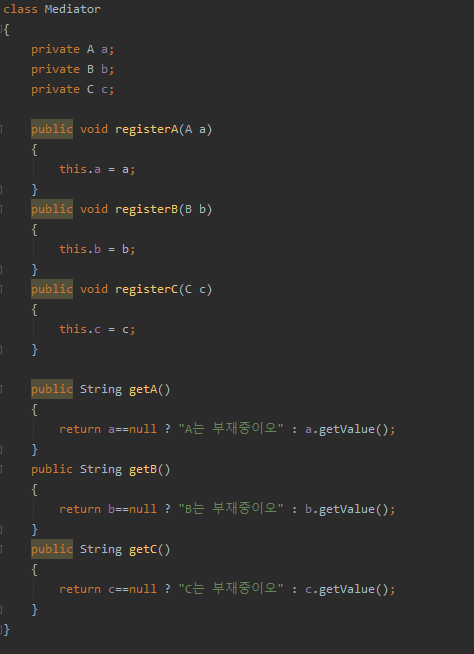 그리고 미디에이터에선 각 객체들을 동적으로 추가하거나 교체할 수 있다.