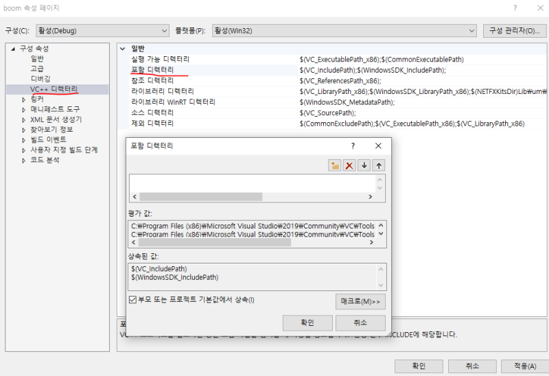 그리고 포함 디렉터리 추가 창을 열어서