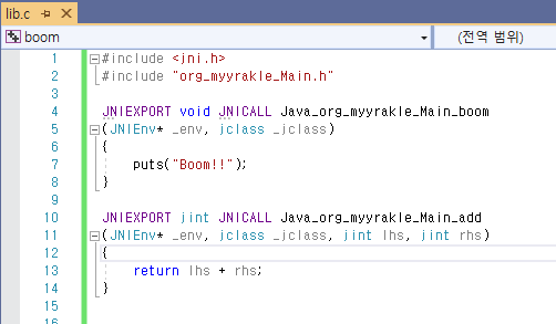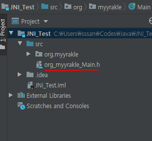 아까 javah로 만든 헤더파일을 가져온다.