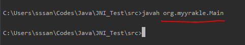 javah의 명령행 인자로는 dll을 사용할, 패키지와 클래스명을 넣어줘야 한다.