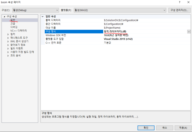 그다음엔 프로젝트 속성에 들어가서 .exe로 되어있을 것을 .dll로 바꾼다.