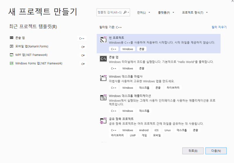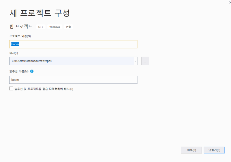 일단 비주얼 스튜디오로 C/C++ 프로젝트를 생성하겠다.