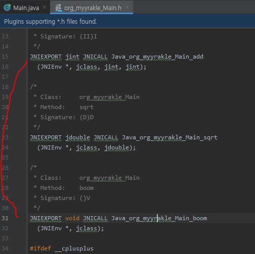 저걸 javah로 돌리면 뭐 이렇게 헤더파일이 생성될 것이다.