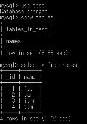 ์ด๋ธ์ ๊ฐ ์ปฌ๋ผ์ _id์ name ๋ฟ์ด๋ค.