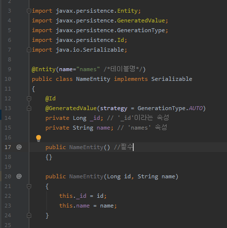 ๊ทธ๋ฆฌ๊ณ @Entity ์ด๋