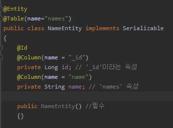 ๊ฐ ์์ฑ(์ด:column)์ ์ด๋ฆ์ ๋ช ์์ ์ผ๋ก ์ง์ ํ๊ณ ์ถ๋ค๋ฉด, Column ์ด๋ ธํ ์ด์ ์ ์ฌ์ฉํ ์ ์๋ค.