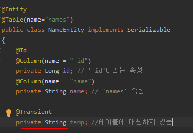 그런 필드를 만들 때 사용하는 것이 바로 Transient 어노테이션이다.