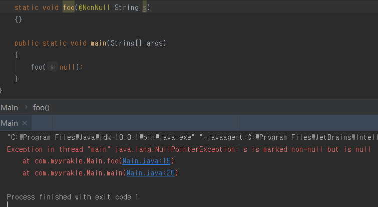 자바는 원래는 메서드에 null을 넘겨도 널 접근 시도를 하기 전까지는 전혀 신경을 쓰지 않지만.
