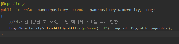 ์ ์ธ์๋ฅผ ์ถ๊ฐํ๋ฉด JPA๊ฐ ์์์ ํ์ด์ง ๋ฒ์ ์ผ๋ก ๊ตฌํํด์ค๋ค.