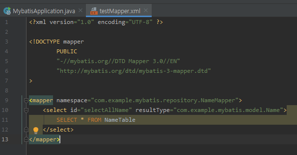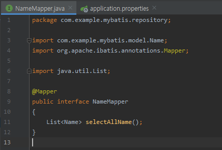 <select id="selectAllName" resultType="com.example.mybatis.model.Name">