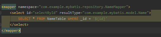 중괄호 안에 들어갈 텍스트는, 매퍼 메소드의 매개변수와 이름이 일치해야 한다.