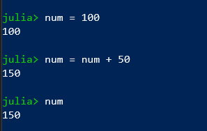 줄리아는 동적 언어 답게, 변수의 선언이 아주 쉽고 간단하다.