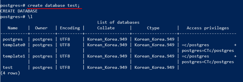[PostgreSQL] 데이터베이스의 생성 및 접속