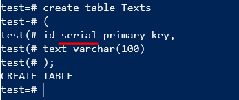 키 타입을 Serial 타입으로 해놓은 간단한 테이블을 구현해본다.