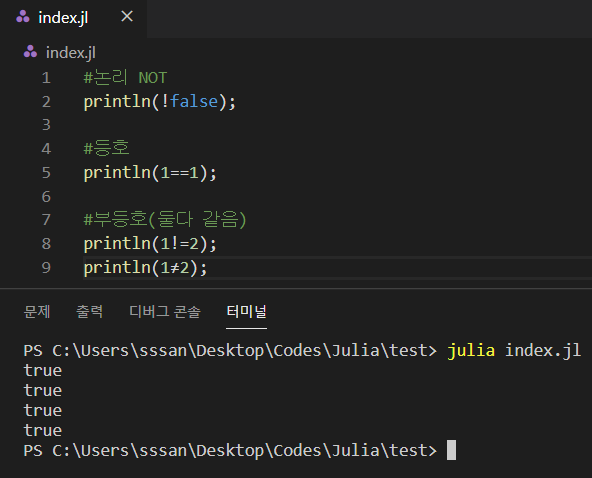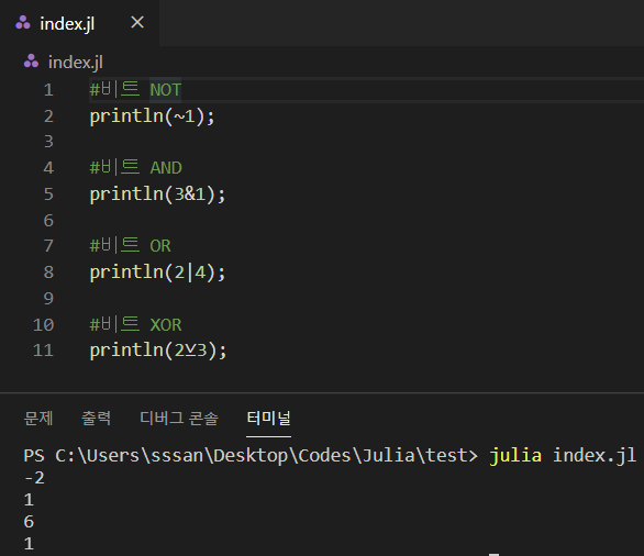 [Julia] 기본 연산자: 비트 및 논리 연산자