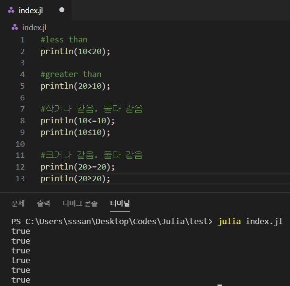 근데 흠... 부등호는 수학 특수문자인 ≠을 쓸 수도 있다.