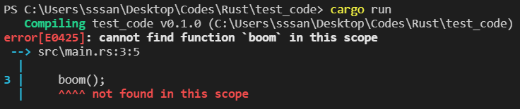 에러를 터뜨린다. boom이라는 함수를 찾을 수가 없단다.