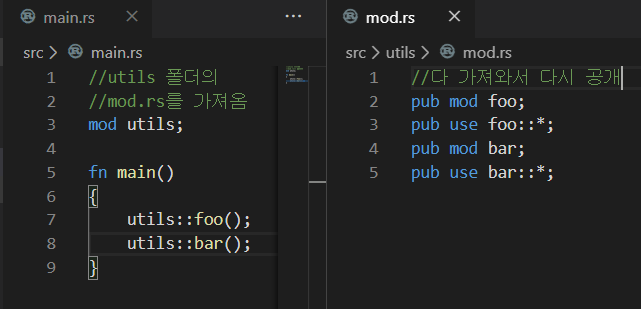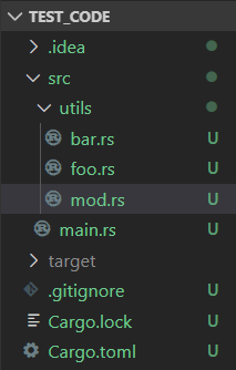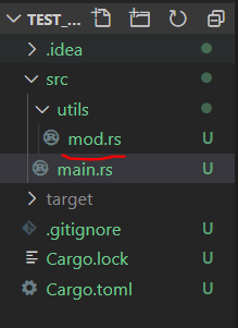 위와 같은 상황에서는, utils라는 이름으로 모듈 획득을 시도하면, mod.rs를 가져오게 된다.