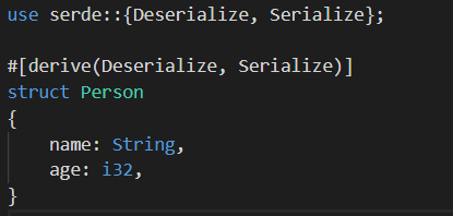 ๊ทธ๋ฆฌ๊ณ Deserialize์ Serialize๋ฅผ derive๋ก ํ์์ํจ๋ค.