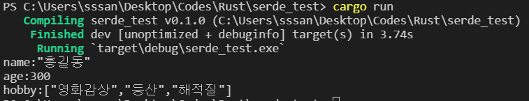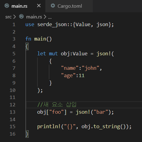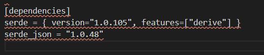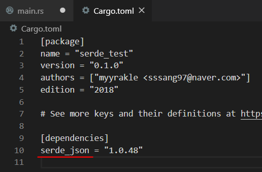 ๋จผ์ serde_json์ ์ข ์์ฑ์ ์ถ๊ฐํ๋ค.