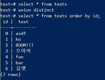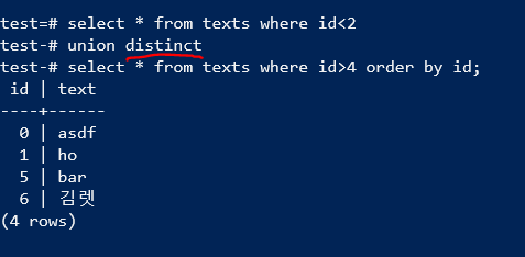 union ๋ฌธ (union distinct)