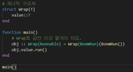 줄리아는 구조체에 대한 제너릭을 제공한다.