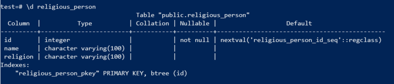 B๋ ์ด๋ฆ, ์ข ๊ต์ ๋ํ ์ ๋ณด๋ฅผ ๊ฐ์ง๋ ์ข ๊ต์ธ ํ ์ด๋ธ์ด๋ค.