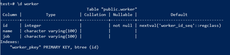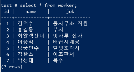 A๋ ์ด๋ฆ, ์ง์ ์ปฌ๋ผ์ ๊ฐ์ง๋ Worker๋ผ๋ ํ ์ด๋ธ์ด๋ค.