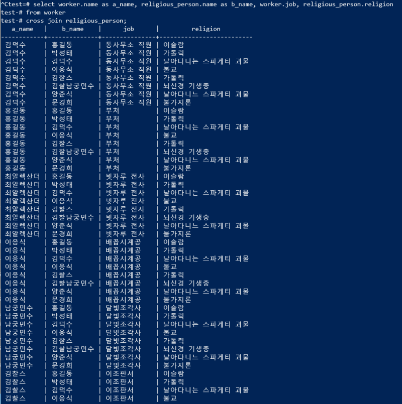 cross join, ์ดํ ๊ต์ฐจ ์กฐ์ธ์ ํ