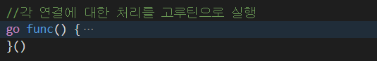 사실 여기서 그냥 연결에서 바로 값을 읽어오거나 써도 되지만, 원활한 순환을 위해 고루틴을 사용했다.