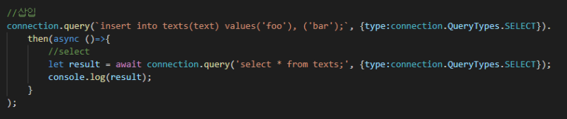 그러려면 연결된 시퀄라이즈 객체의 query 메서드를 쏘면 된다.
