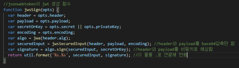 ํ๋ฒ node.js์์ ๊ตฌํ๋ jwt ๋ชจ๋์ ์ฝ๋๋ฅผ ๋ฏ์ด๋ณด์.
