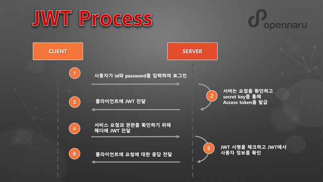 JWT์ ์ฌ์ฉ์ ๋์ฒด๋ก ์๋์ ๊ฐ์ ํ๋ก์ธ์ค๋ฅผ ๋ฐ๋ฅธ๋ค.