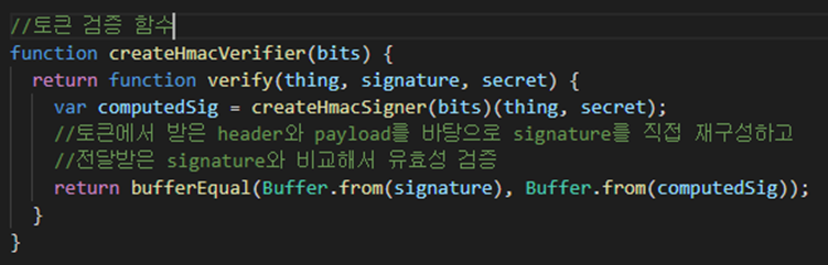 ๋ค์์ jsonwebtoken์ ์ข ์ ๋ชจ๋ jwa์ ํ ํฐ ๊ฒ์ฆ ์ฝ๋์ด๋ค.